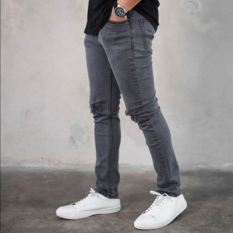 CELANA JEANS HITAM SOBEK PRIA STRETCH SOFT BAHAN MELAR CELANA RIPPED JEANS PRIA CELANA SOBEK LUTUT