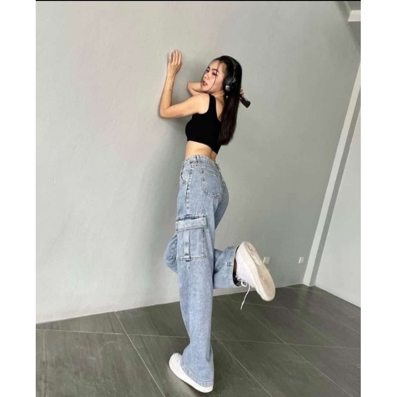 CELANA JEANS KARGO HIGHWAIST WANITACELANA JEANS KARGO HIGHWAIST WANITA
