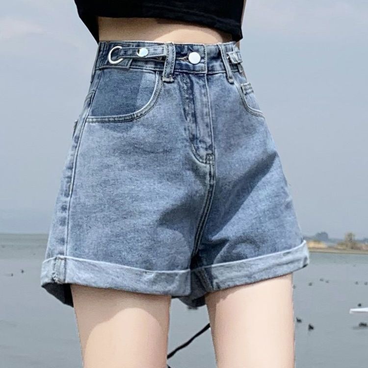 Gaya: celana kaki lebar Jenis pinggang: pinggang tinggi Celana: celana pendek Gaya: perjalanan sederhana/Bahasa Korea Elemen populer: bisa dicuci, tahan aus, warna solid Kain/Bahan: Denim/Katun