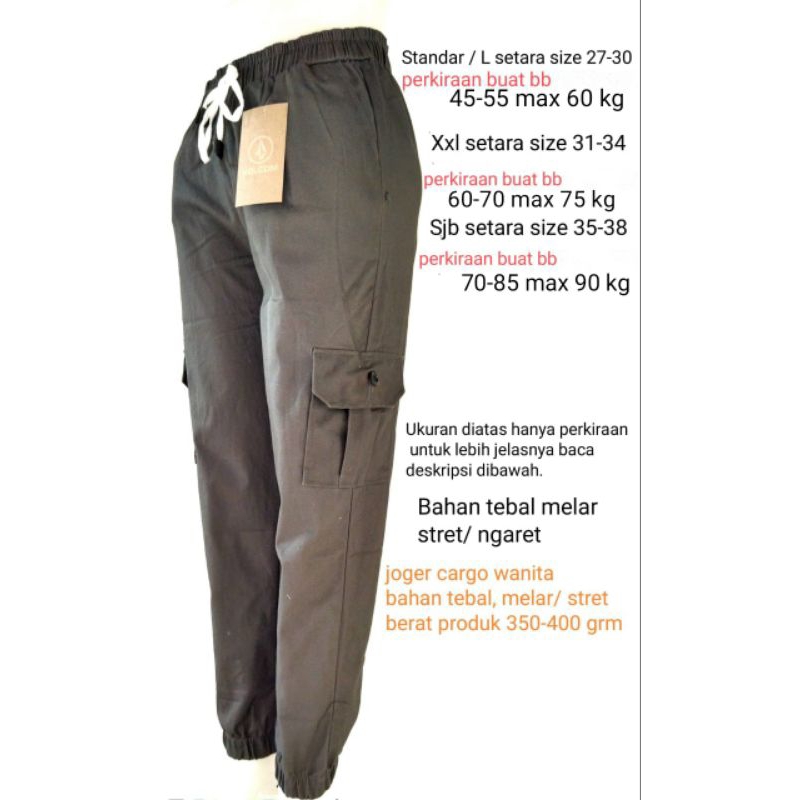 Detail Celana Jogger Wanita Standar Jumbo Melar Cargo Joger Chinos Bahan Katun Twiil Tebal Kerja Kantor