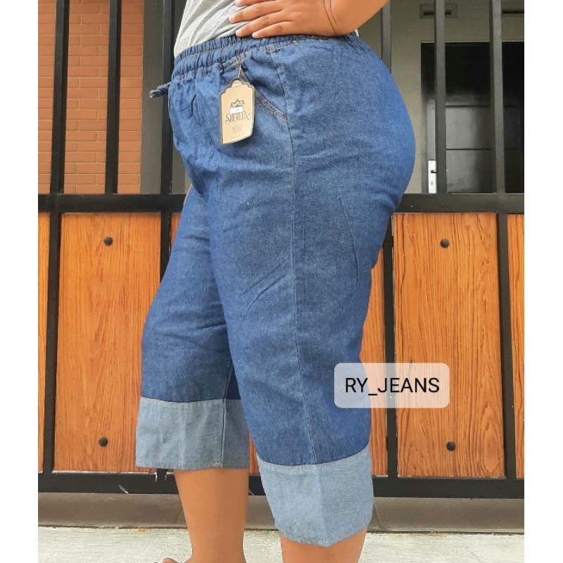 Detail celana jumbo wanita celana pendek 7/8 wanita jeans jumbo pinggang kolor wanita