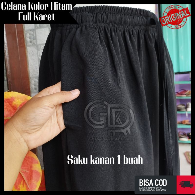 Celana Hitam Wanita/ Celana Kolor/ Celana Kekinian/Kulot Kekinian/Kulot Full Karet Bahan Ferrari/Celana Silat/Celana Kerja/ Celana HitamPanjang/Celana Hitam Jumbo