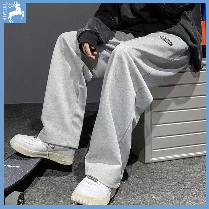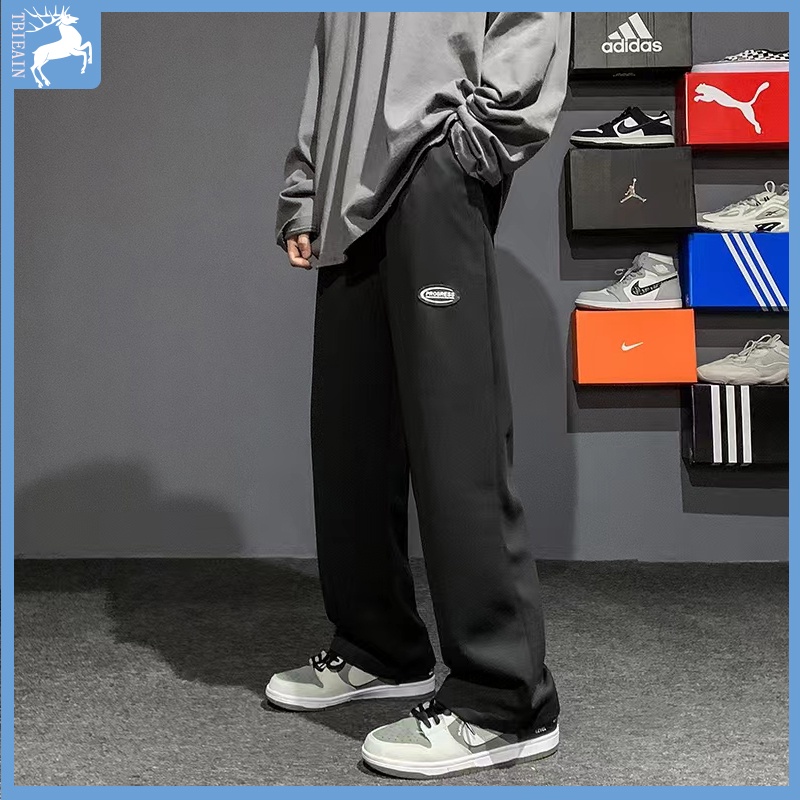 Pakaian Pria > Celana Panjang > Jogger > Celana kasual pria celana panjang polos celana olahraga hitam abu abu celana lurus loose pants pinggang elastis Fashion korea