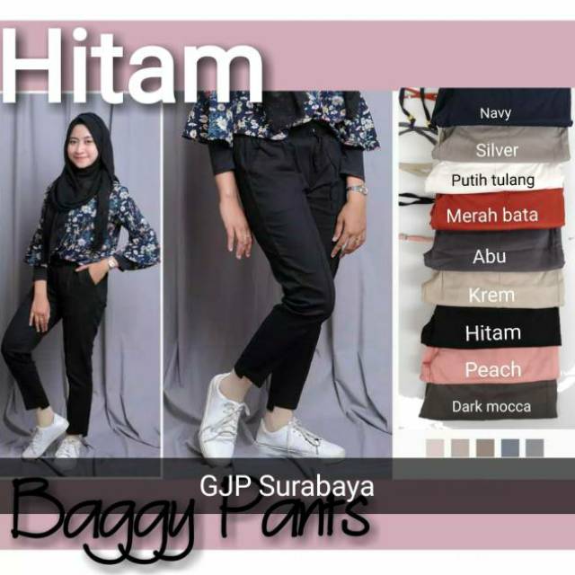 Detail Bahan : - Tekstur bahan halus, tebal, tidak nerawang, nyaman banget di pakai. - Bentuk celana baggy (longgar tidak melar agak mensil tapi tidak ketat) model celana bisa untuk ke kantor, ke kampus, maupun santai.