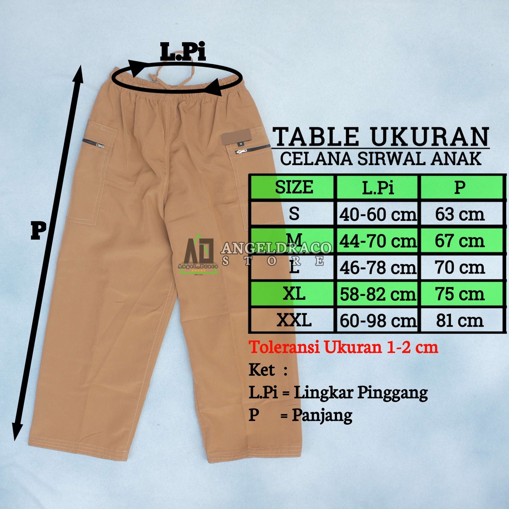 Celana Komprang Sirwal Pangsi Anak Premium 4-13 Tahun • Bahan Bestway Premium • Tidak Mudah Kusut • Nyaman Di Pakai • Pinggang Menggunakan Karet & Tali • Saku Kanan & Kiri