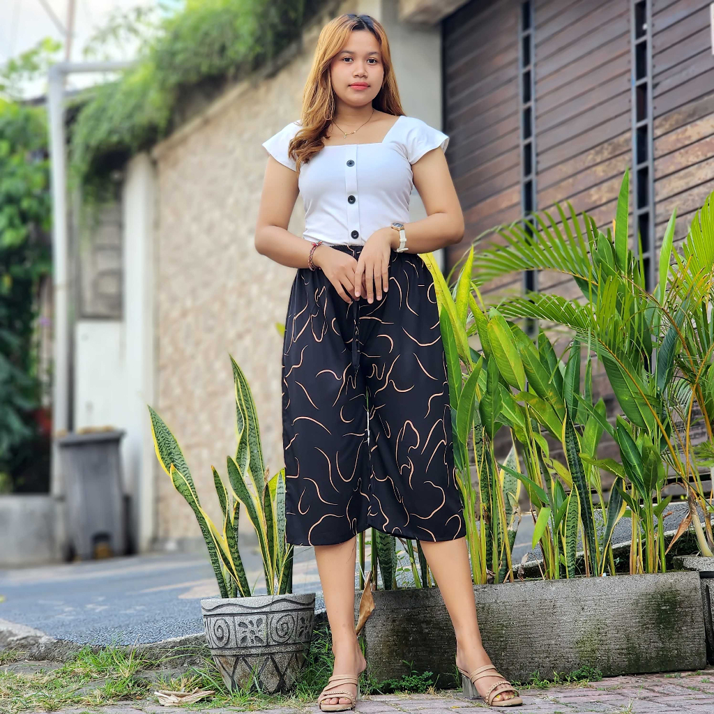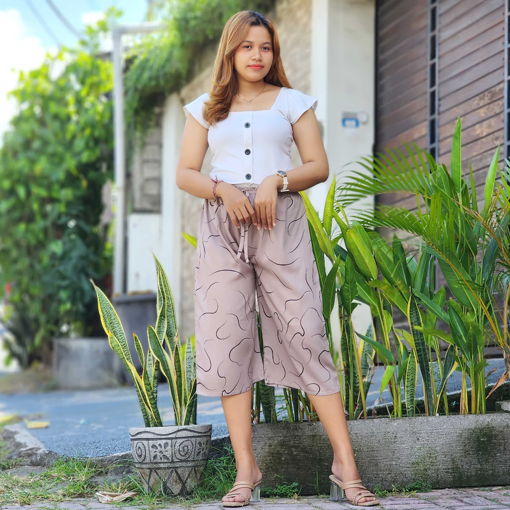 Celana Kulot 7/8 Spesifikasi ๐ท Lebar Pinggang 47cm ke 90 cm (upto BB70kg) ๐ท Panjang +- 70cm ๐ท Lingkar Paha : 70 ๐ท Panjang Pesak : -+32 ๐ท Berat 120gram jadi kg masih bisa masuk 10 Celana (tergantung peraturan Expedisi)