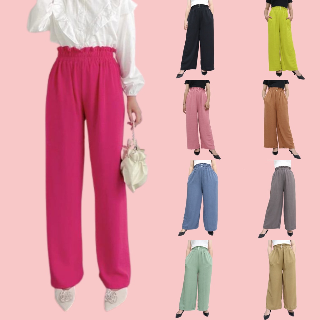 Detail Celana Kulot Crinkle Airflow Highwaist Button Premium Wanita