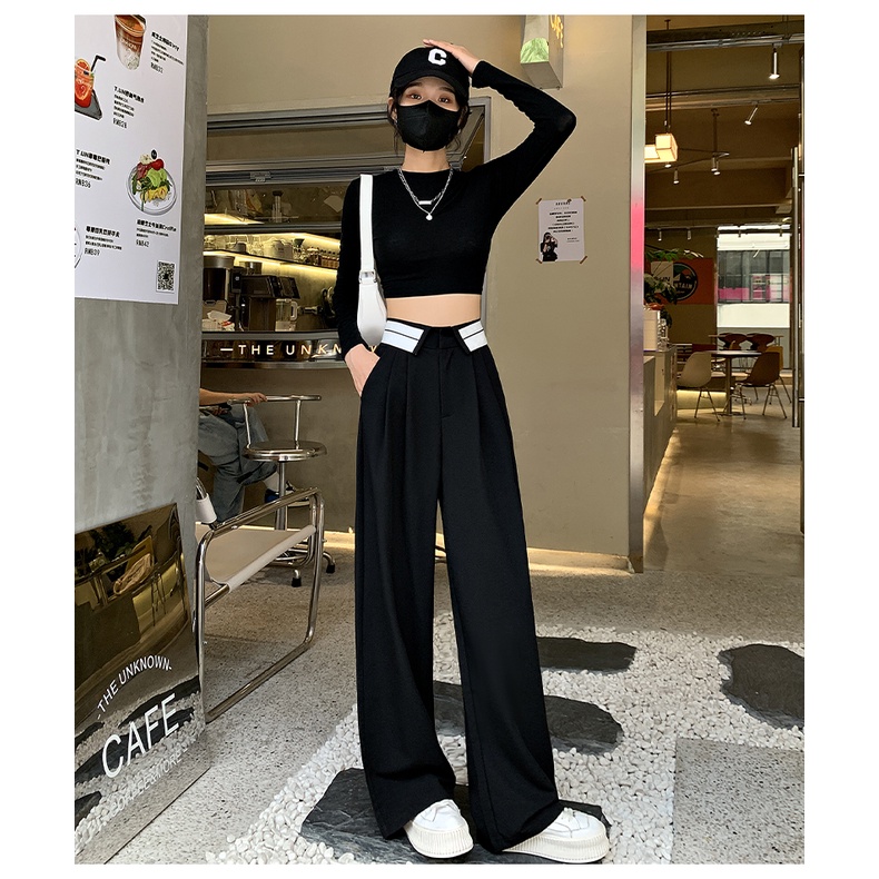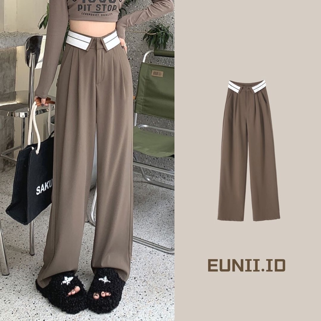 Detail Celana Kulot Highwaist Loose Celana Panjang Hitam Celana Wanita Straight Pants Korean Style