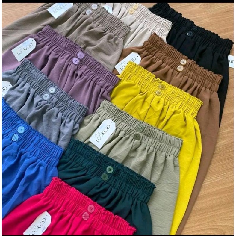 Celana Kulot Highwaist Cringkle Full Karet Kancing dua