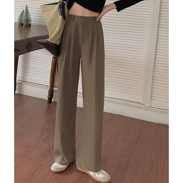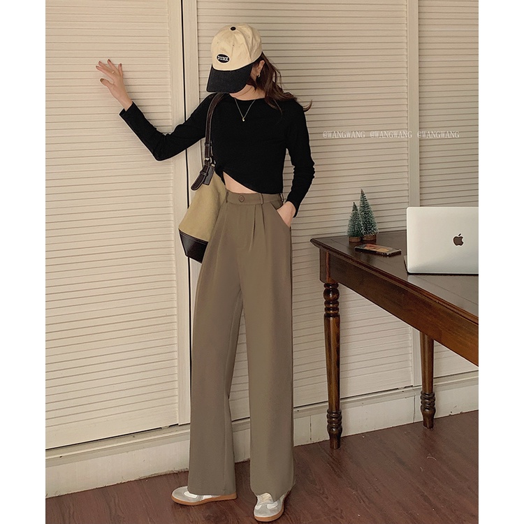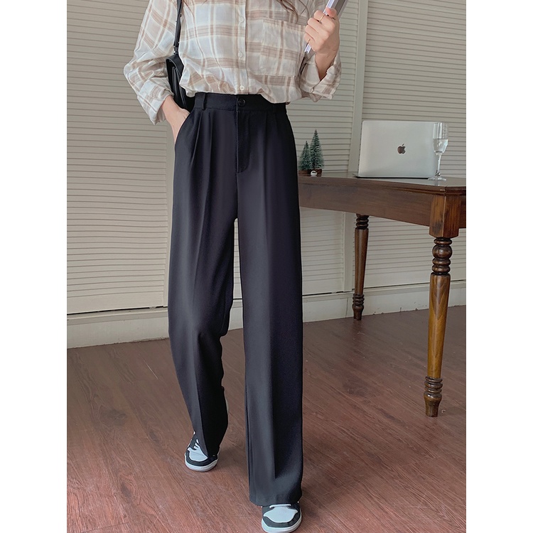 Pakaian Wanita > Celana Panjang & Legging > Celana Panjang & Legging Lainnya > Celana Kulot Kasual Loose Celana Panjang High Waist Wanita Korea Style Hitam Straight Pants Celana Wanita