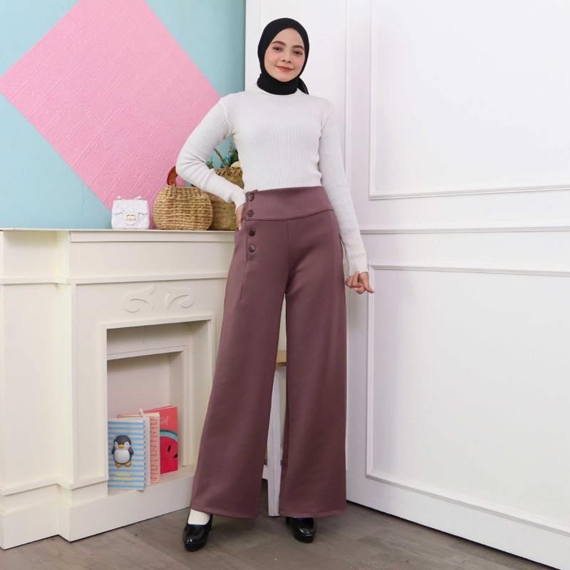 Detail Celana Kulot KL-3004 Scuba Premium Kancing Batok Depan Kulot Terbaru All Size Jumbo Fit To Xl