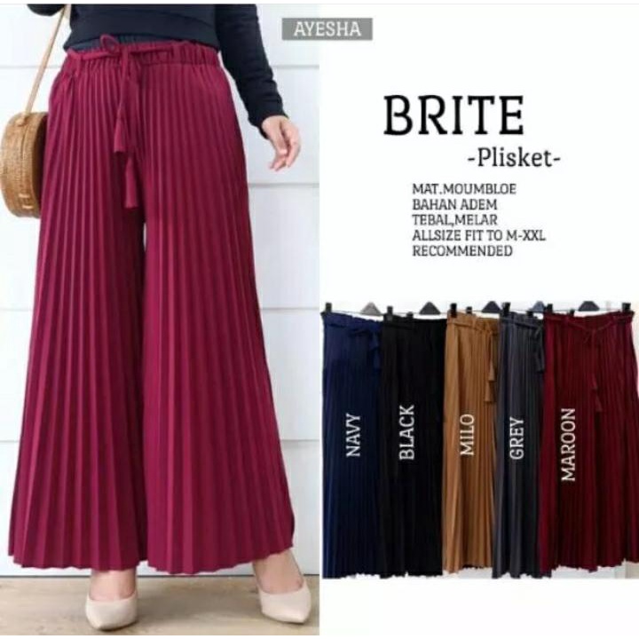 CELANA KULOT PLISKET PREMIUM JUMBO UNTUK BB 50-80 BISA DI SESUAIKAN. BAHAN PREMIUM TEBAL DAN TIDAK MENERAWANG. MOTIF PLISKET. ADEM DAN SANGAT NYAMAN SAAT DIPAKAI.
