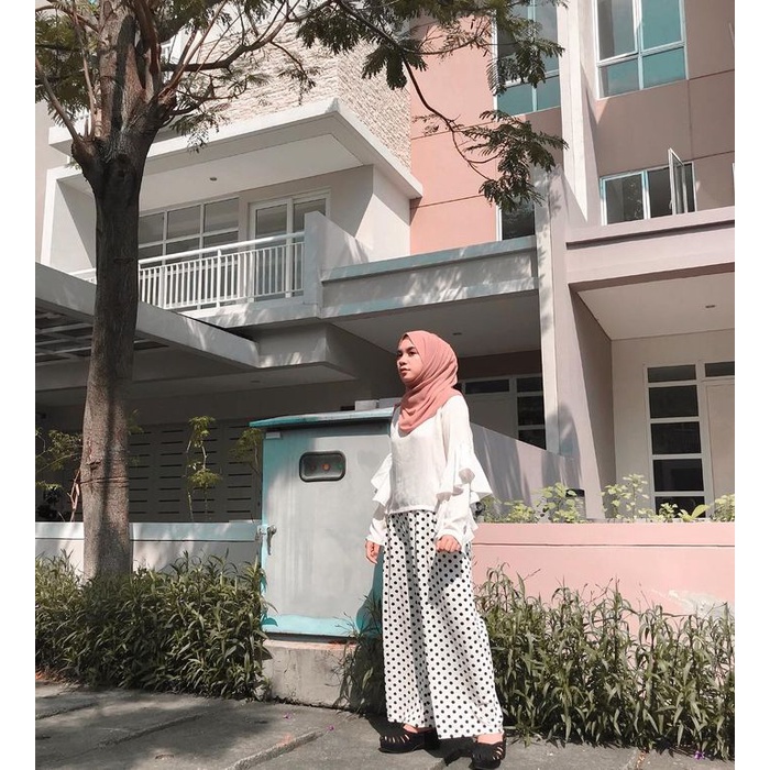 Detail Celana Kulot Polkadot Wolfis Celana Panjang Highwaist