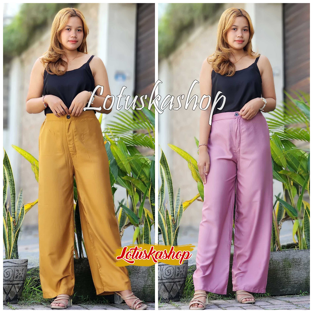 Detail Celana Kulot Wanita Highwaist Kekinian Ala Korea Basic HW Pinggang Karet Ada Resleting