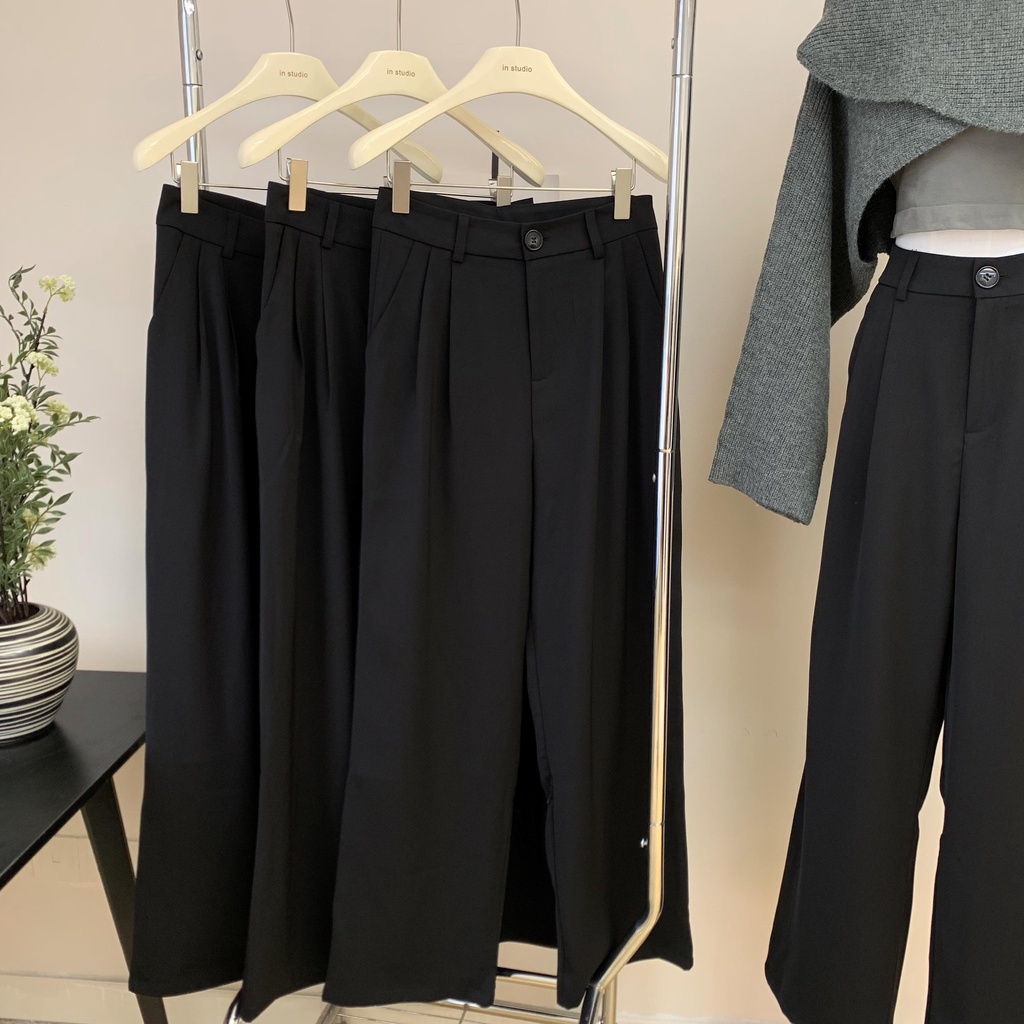 Detail Celana Kulot Wanita Kekinian/Pants Korean Style/Celana Bahan Hitam Highwaist