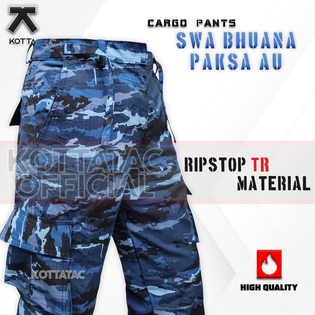 Spesifikasi Celana : - Bahan Ripstop TR berkualitas - Tahan gesekan - Model celana cargo regular - Terdapat 6 saku kantong - Tidak mudah luntur - Jahitan rapih dan kuat