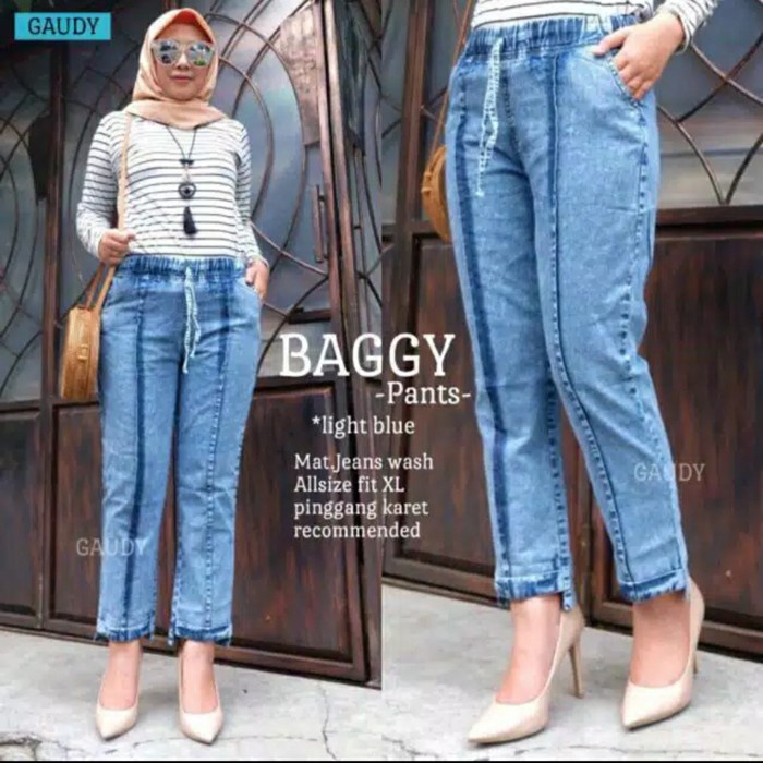 Pakaian Wanita > Denim > Celana Panjang Jeans > Celana OBBY Pants Jeans Boyfriend Jeans Snow Jumbo / Baggy PantsTulang Jinjing Pinggang Kolor
