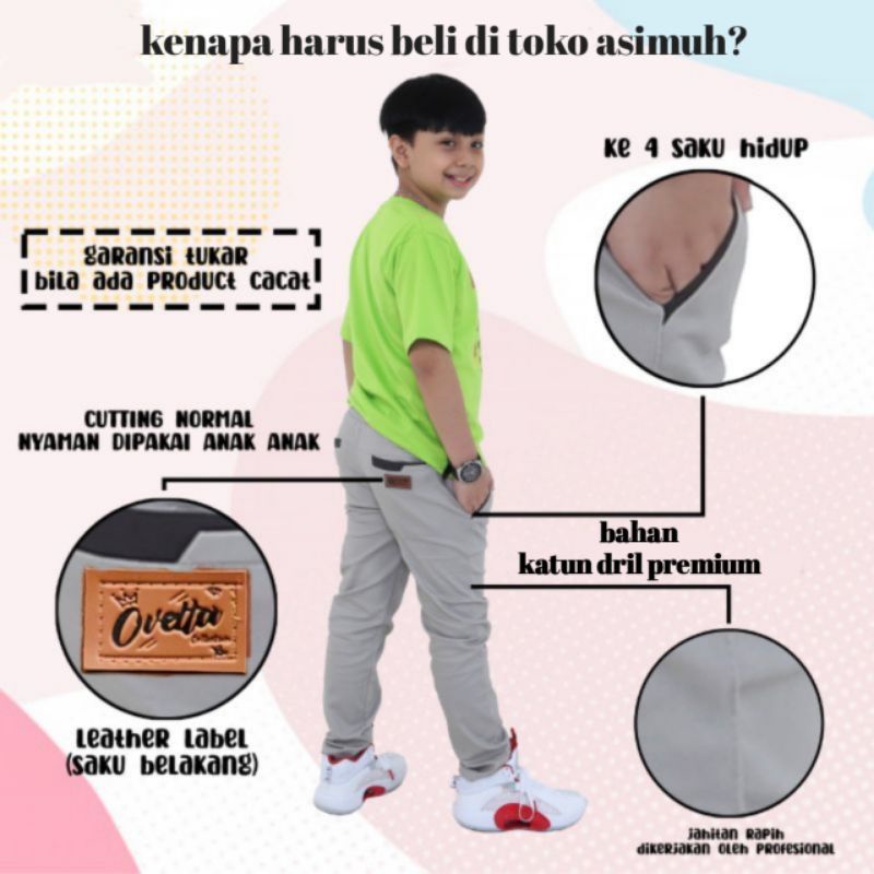 Detail Celana panjang anak laki laki dan perempuan unisex chino slimfit celana formal warna hitam moca abu cream tangung usia 2 3 4 5 6 7 8 9 10 11 12 tahun
