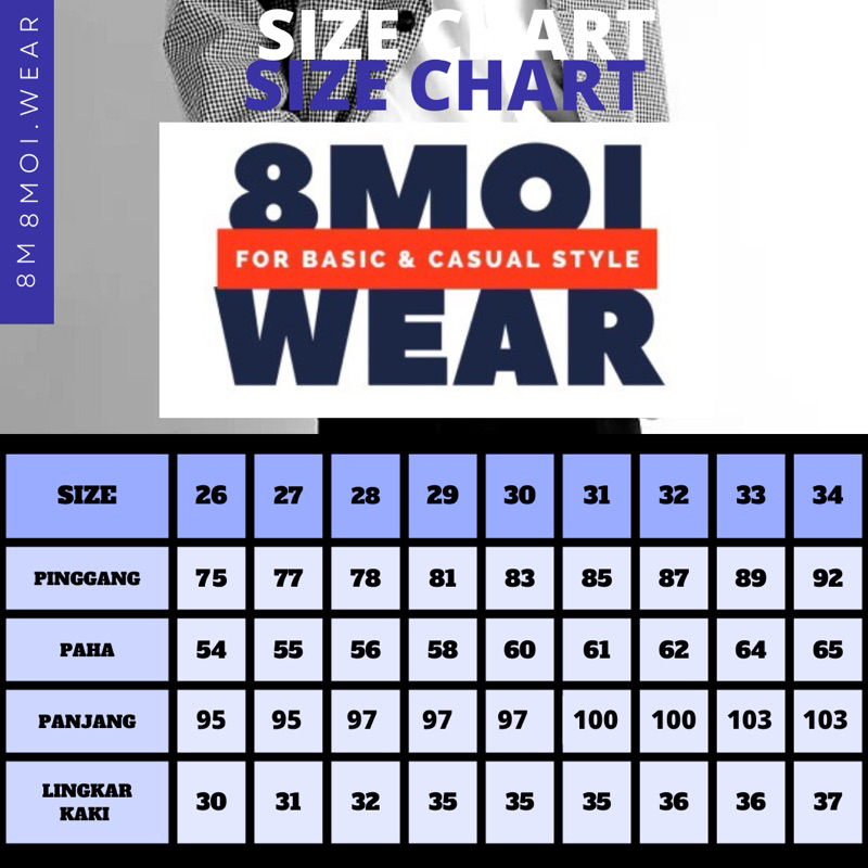 Celana Formal Pria by 8Moi.Wear celana didesign untuk memberikan penampilan elegan dan profesional. Dibuat dari bahan berkualitas, celana ini memiliki cutting slimfit dan tersedia dalam berbagai gaya dan warna yang cocok untuk acara formal. Dengan Celana Formal by 8Moi.Wear , Anda akan terlihat rapi dan percaya diri dalam setiap kesempatan formal.
