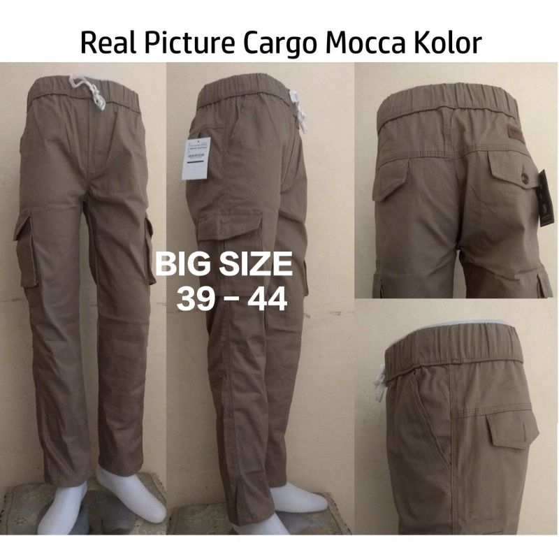 Celana Panjang Cargo Big size Pria Wanita Ukuran Jumbo 39-44 Bahan Katun Melar Model Pinggang Karet Kolor