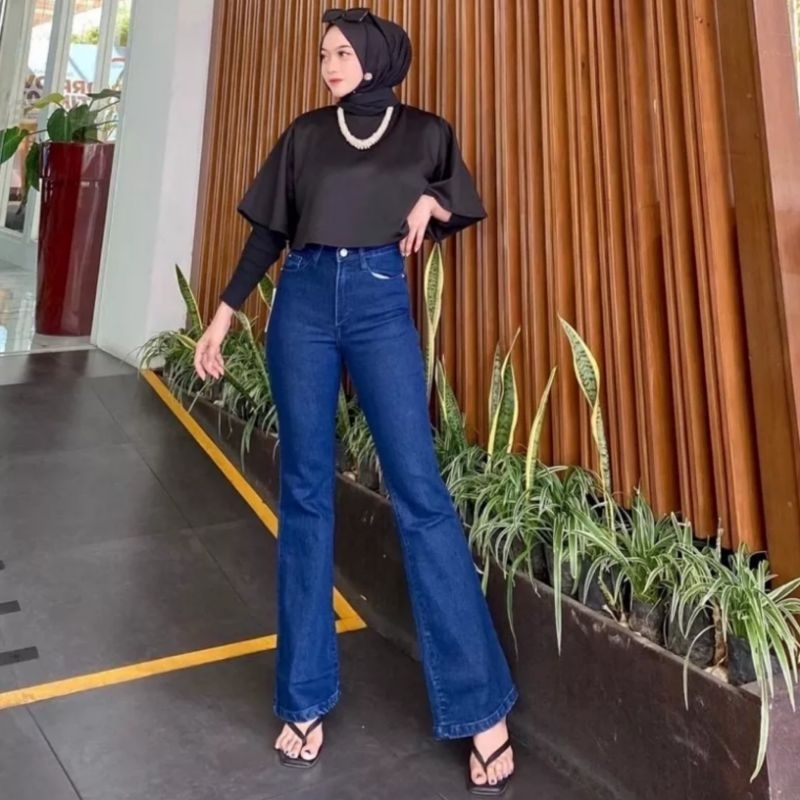 Celana Panjang Highwaist Cutbray Jeans Stretch Cewek Wanita 1202 Celana jeans wanita kaki lebar cutbray highwaist strech