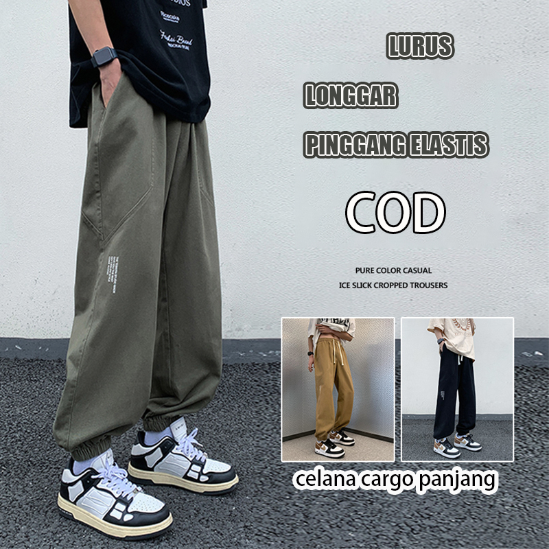 Detail Celana panjang pria Celana cargo panjang cowok Korean style celana karet hijau baggy pants loose straight pants celana santai pria oversize jogger celana boyfriend celana dasar pria 2023