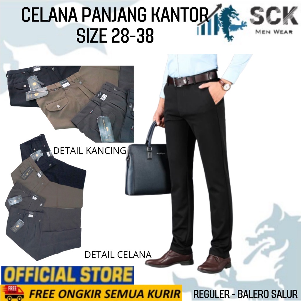 Detail Celana Panjang Pria Kantor BALERO SALUR Hitam HALUS Polos Bahan Katun Model Reguler / Pakaian Kerja Formal - sckmenwear GROSIR