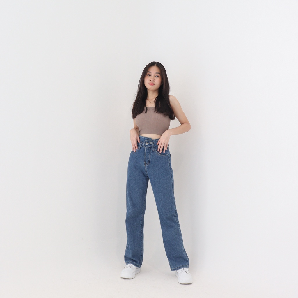 Detail Celana Panjang Straight Highwaist Kulot Jeans Wanita Kekinian - X51