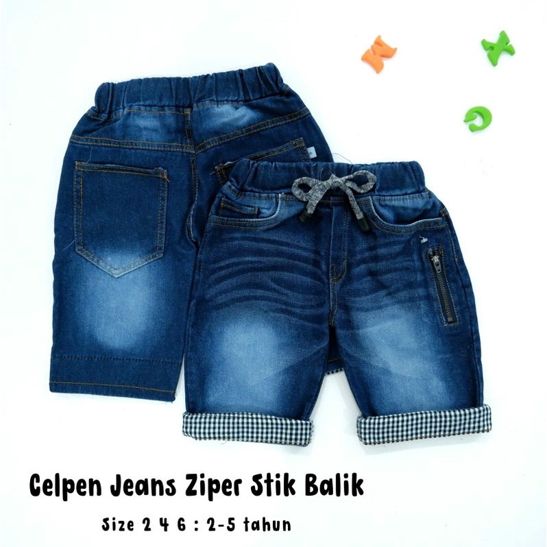 Detail Celana Pendek Cowok Celpen Jeans jins Ziper Stik Balik Anak Laki Laki Cowok 2-9Tahun