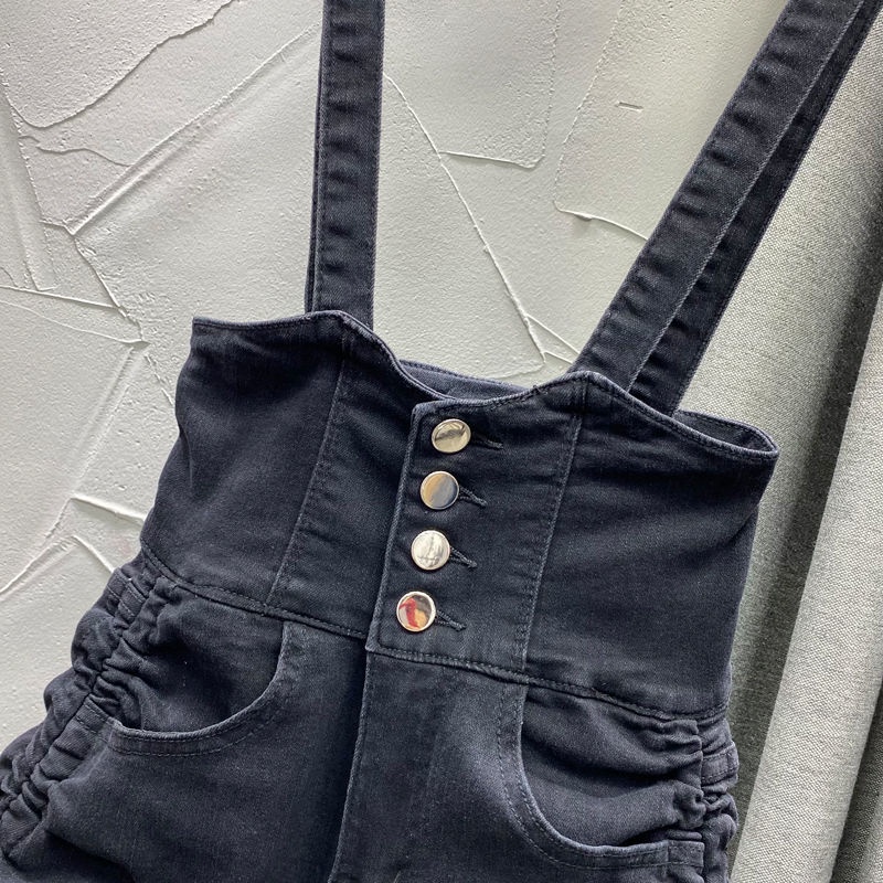 Detail Celana pendek denim overall wanita hot girl musim panas mode baru pinggang tinggi slim slim a-line b