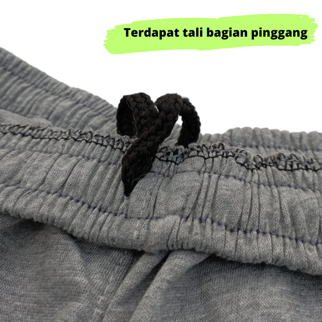 • Logo Bordir • Ada kantong kanan dan kiri • Bahan kaos babyterry adem • Pingganng stretch bisa melar • Ada tali kur di lingkar pinggang