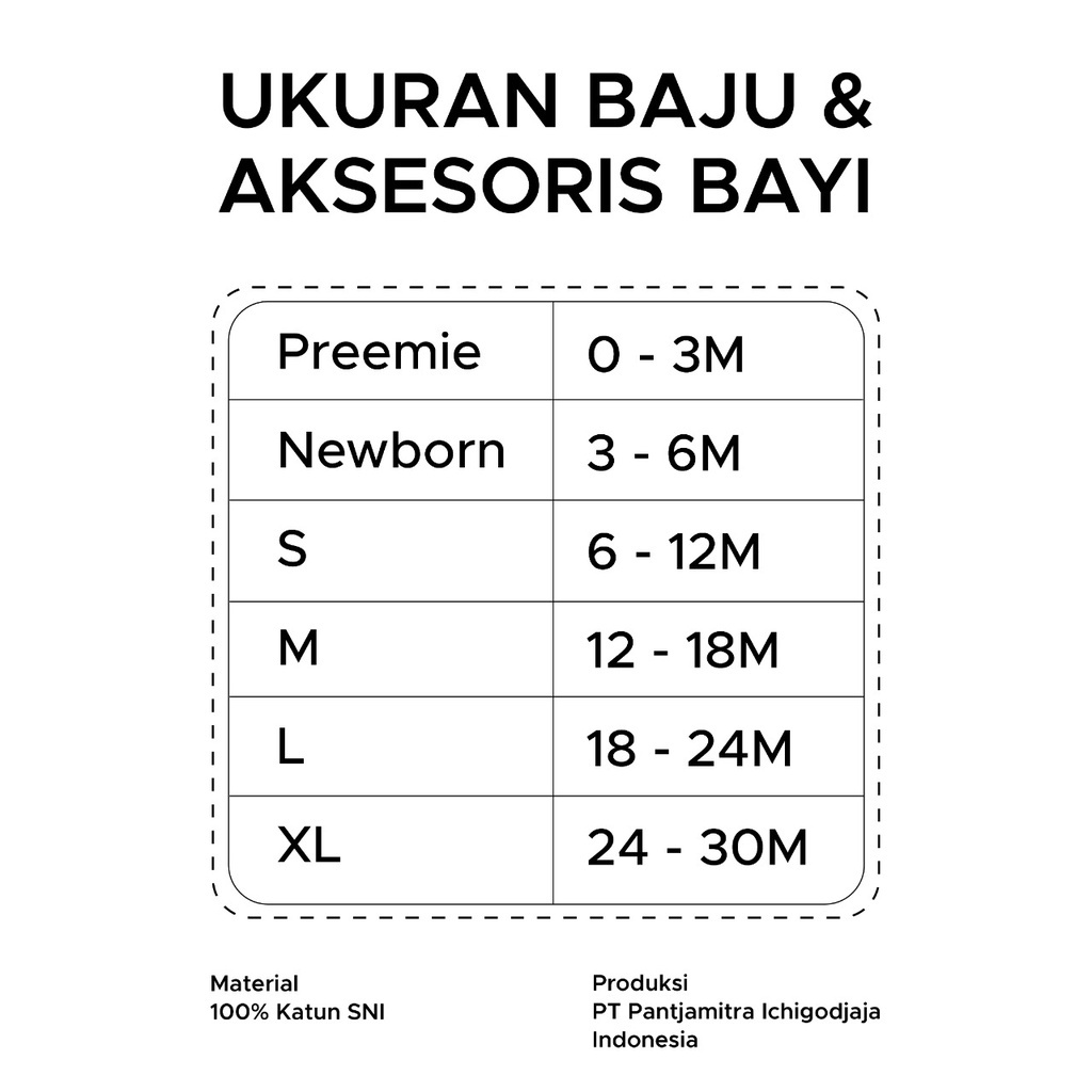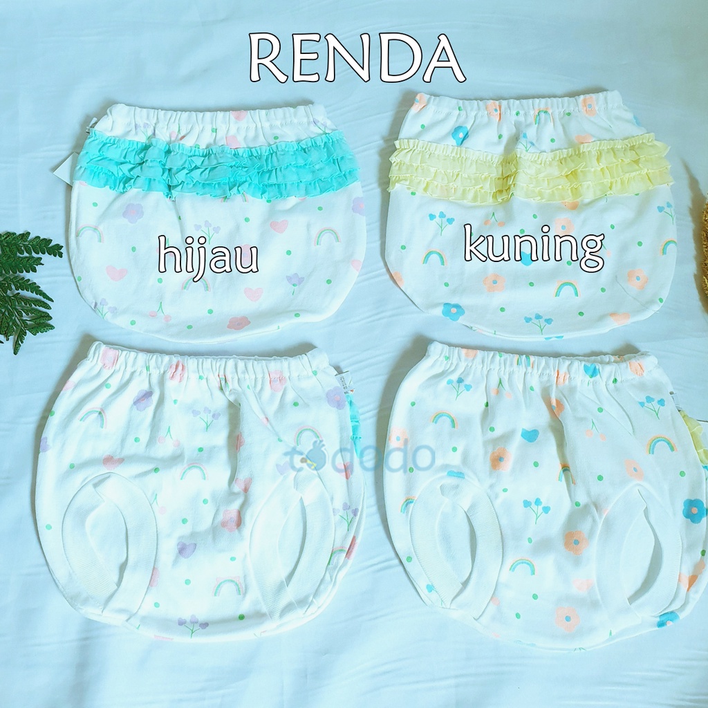 Tersedia ukuran : 1. NB/Premie (0 - 3 bulan) Polos, Lingkar Pinggang Elastis sampai 30 cm 2. NB (0 - 6 bulan) Renda belakang, Lingkar Pinggang Elastis sampai 33 cm