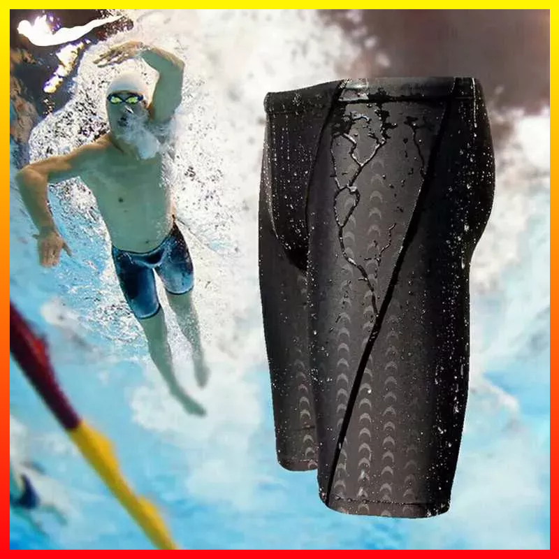 Untuk menemani Anda yang hobi berenang dapat menggunakan celana renang yang satu ini. Memiliki desain menyerupai kulit hiu yang terbuat dari material berkualitas dan tidak mudah sobek ketika digunakan. Ukuran celana yang relatif panjang sehingga dapat menutupi sebagian besar paha Anda.