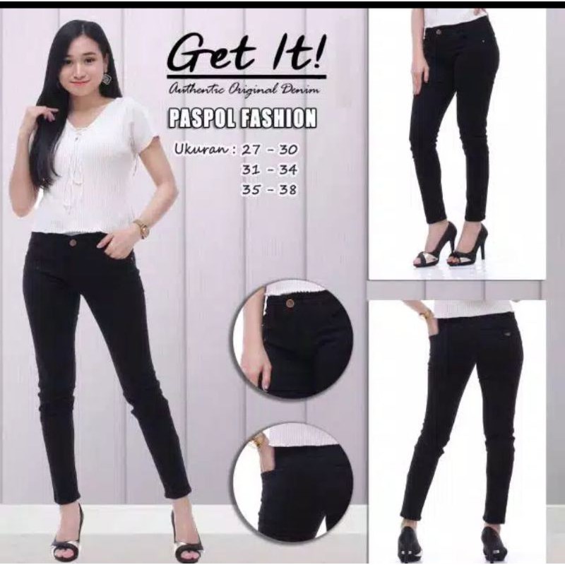 CELANA SKINY HITAM CEWEK PINGGANG MEDIUM UKURAN KECIL&JUMBO SIZE 27,28,29,30 SIZE 31,32,33,38