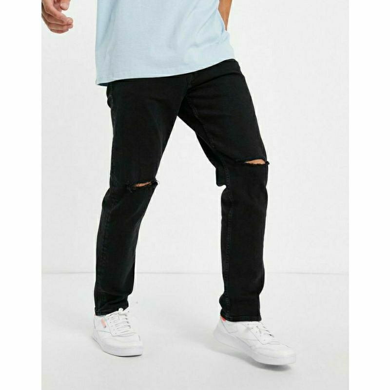 CELANA SOBEK PRIA RIPPED JEANS ROBEK STANDAR BASIC REGULER HITAM 27-38
