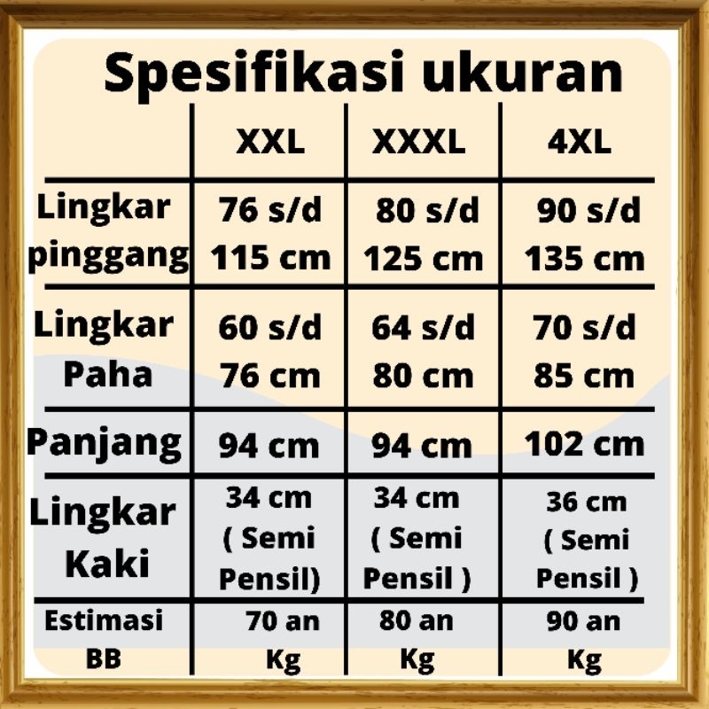 Deskripsi Ukuran 6XL - Lingkar Pinggang : sebelum ketarik 105 cm ( maksimal stretch sampai 152 cm )