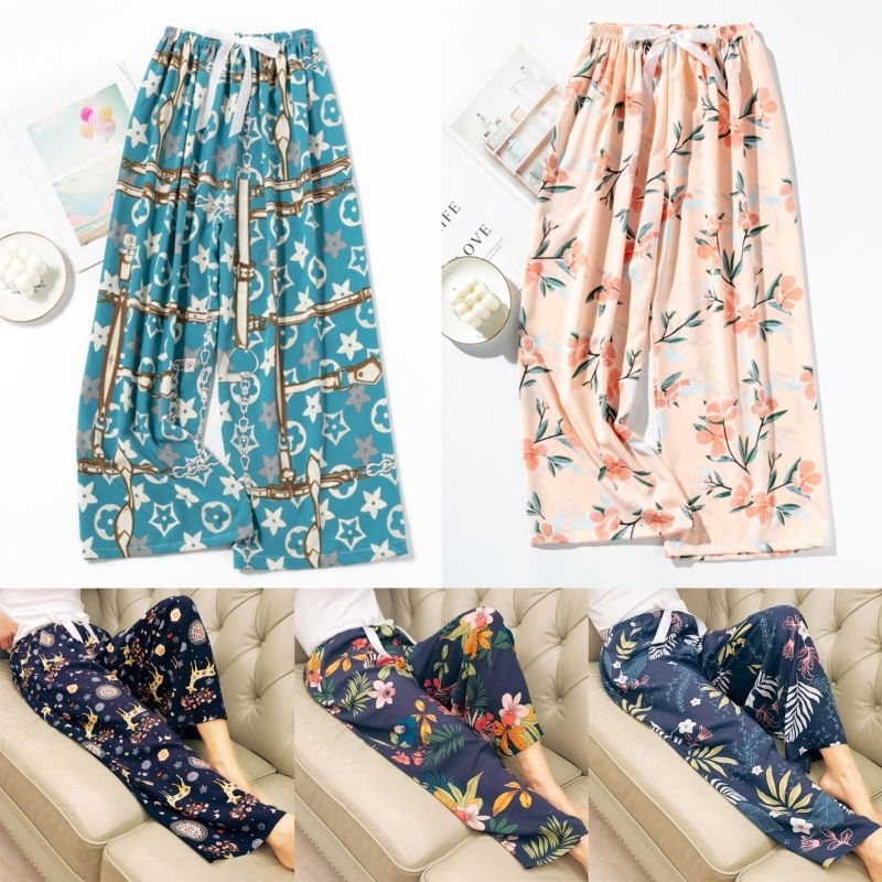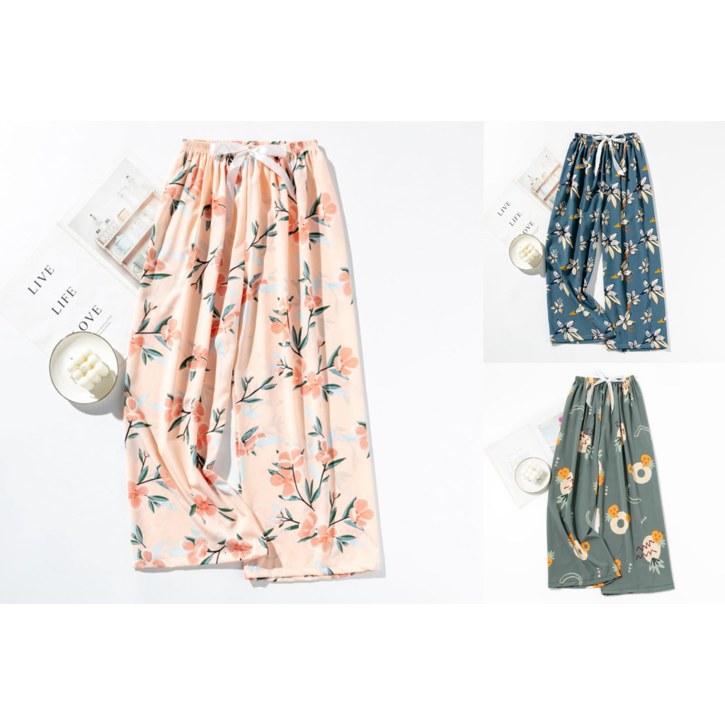 Detail celana tidur kulot wanita rayon premium aksen pita all size motif bali