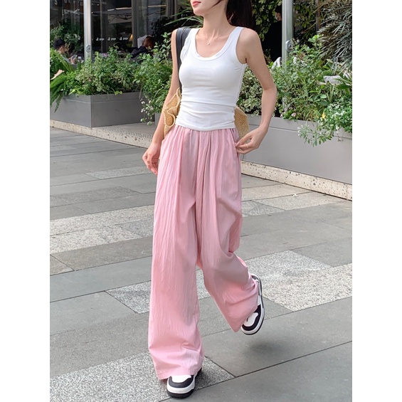 Pakaian Wanita > Celana Panjang & Legging > Celana Panjang & Legging Lainnya > ✲✶celana wanita harga murah bertekstur kasual celana musim panas wanita pinggang elastis slim lurus celana tipis lebar kaki celana mengepel drape celana celana wanita celana pinggang tinggi