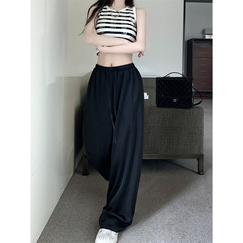 Pakaian Wanita > Celana Panjang & Legging > Celana Panjang & Legging Lainnya > ☽celana wanita harga murah pinggang elastis serut kasual celana wanita musim panas pinggang tinggi lurus longgar celana serbaguna slim lebar kaki celana mengepel celana celana wanita celana pinggang tinggi