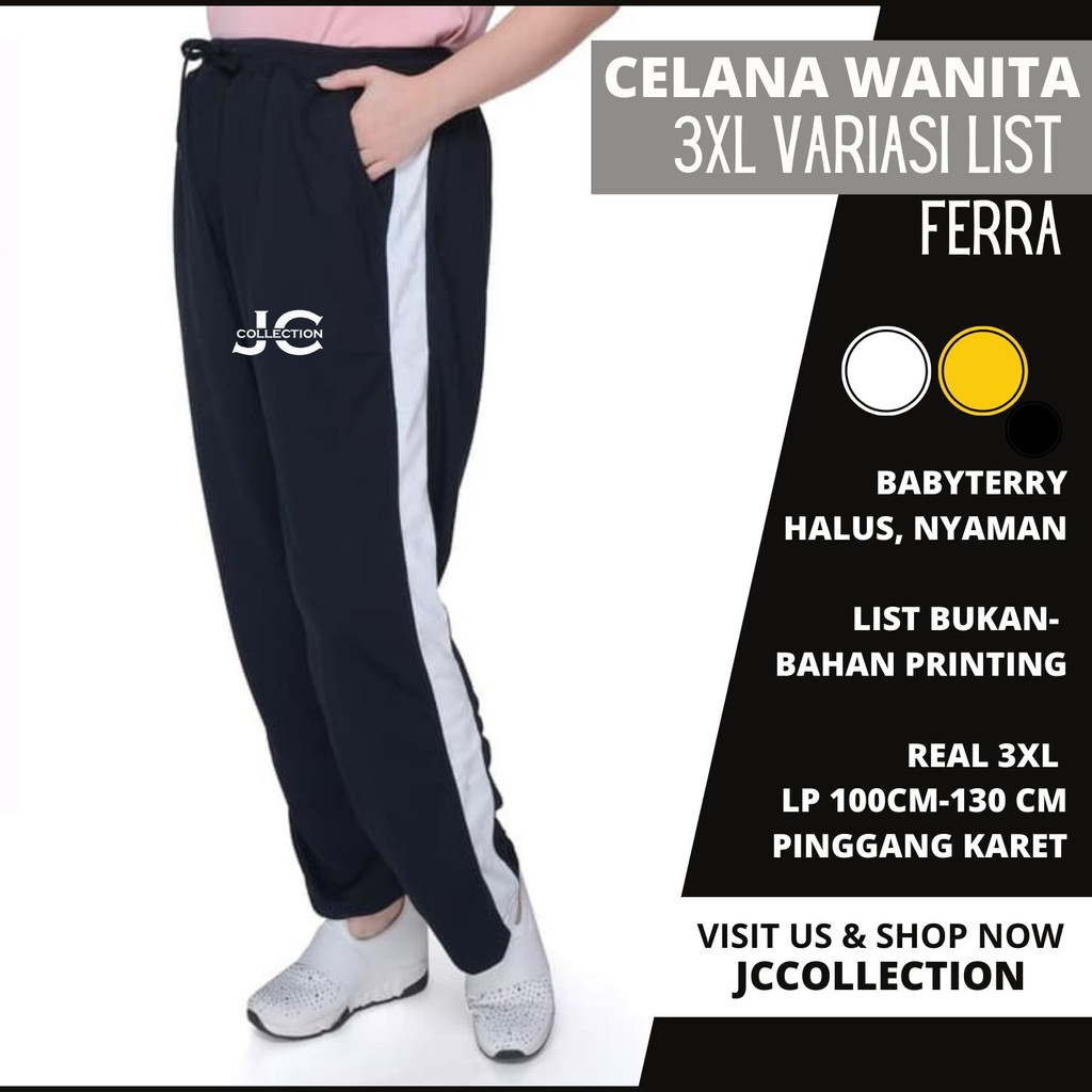 Celana Wanita Jumbop Jogger Big Size Side List Olahraga Ferra / Celana Training Wanita Jumbo - JCCollections