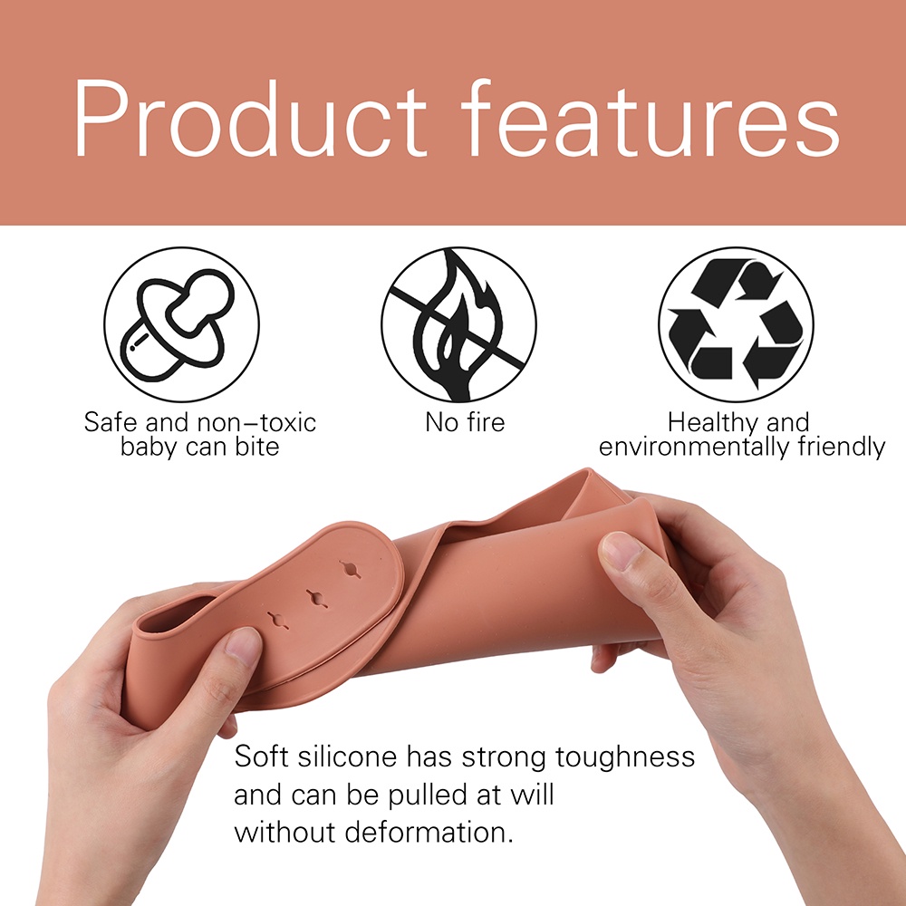 Spesifikasi: - Bahan dasar silikon BPA Free - Tahan pada suhu -25℃ hingga 220℃ - Desain inovatif dengan mangkuk kecil di bagian bawah untuk tatakan air liur bayi. - Mudah dibawa, praktis dibawa kemana saja. - Ukuran : Panjang 30 cm; Lebar 23 cm - Untuk varian Horse, Goat, Rat, dan Monkey, ukuran bib : Panjang 31 cm; lebar 23 cm - Cocok digunakan untuk anak usia 4 bulan hingga 6 tahun