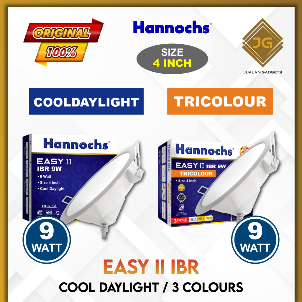 -Downlight Led Bulat (Ceiling Lamp) -Size: 4 Inchi. -Daya: 9 Watt. -Voltase: AC 220V~240V. -Fluks Cahaya: 1100 Lumen. -Dimensi Produk: Diameter 129mm x 48mm. -Lubang pemasangan: 10,5 cm. -Tersedia 2 Cahaya: Putih dan Kuning. -Merek: Hannochs. -Type: Easy ll IBR 9W.