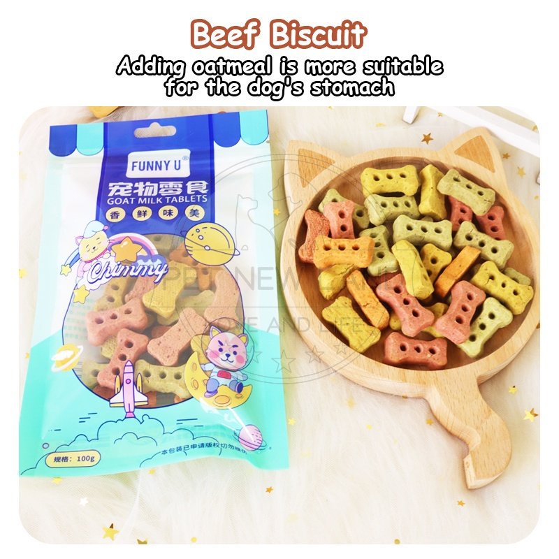 Produk: Biskuit Gigi Hewan Peliharaan Berat: 100g Umur simpan: 12 bulan Semua kucing dan anjing di atas 3 bulan bisa makan Bahan: ayam berkualitas tinggi, protein nabati, berbagai mikroorganisme, dll.