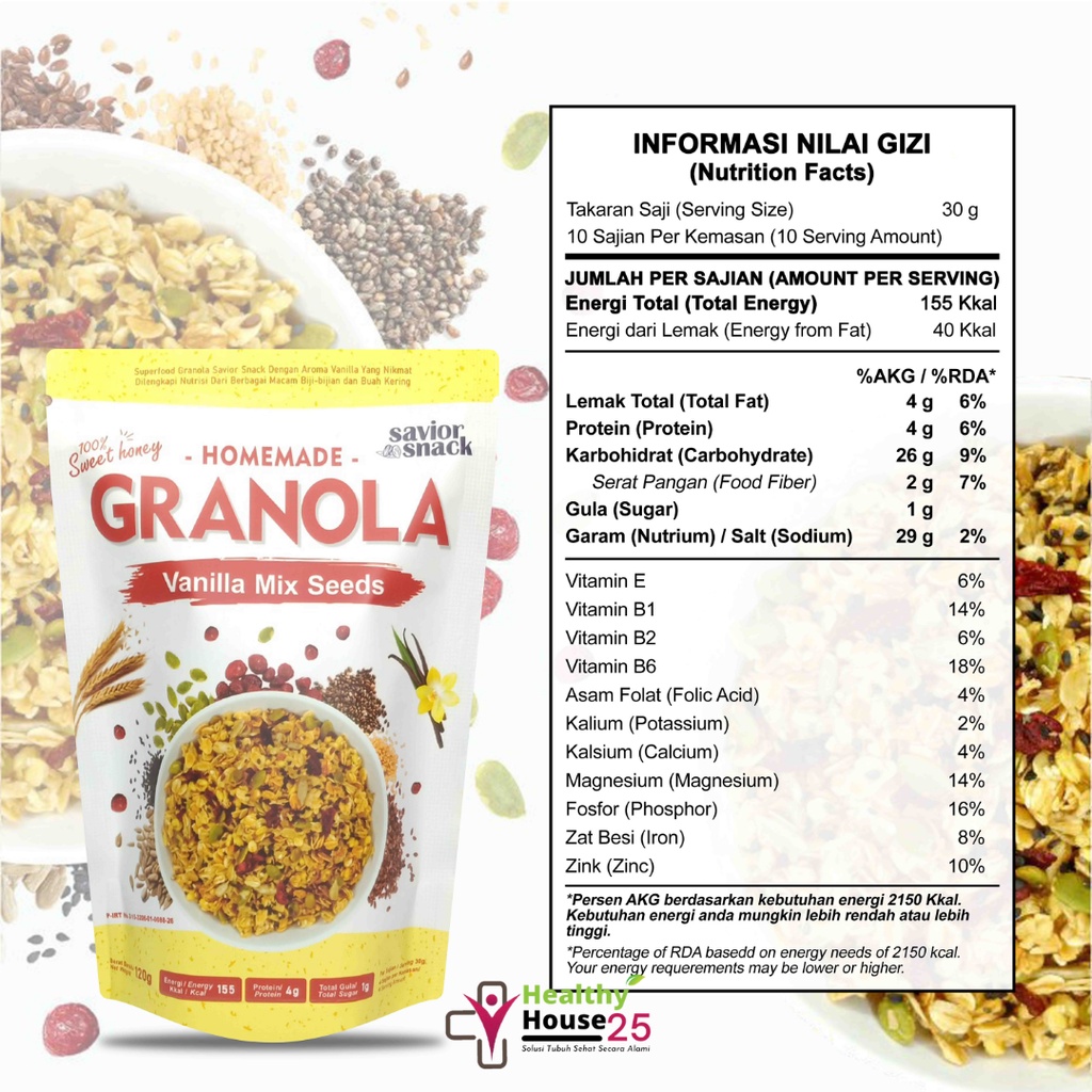 Cemilan Sehat Ibu Hamil GRANOLA CRUNCHY VANILLA MIX SEEDS Makanan Bumil Bergizi & Bernutrisi Tinggi SAVIOR SNACK Best Honey Anti Mual