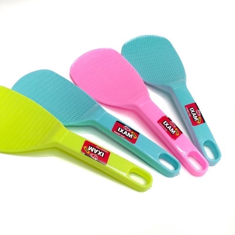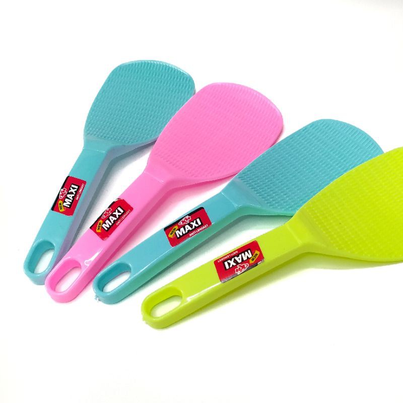 MOHON SERTAKAN KETERANGAN WARNA harga untuk 1 pcs Sendok nasi teflon digunakan untuk mengambil nasi. berbahan plastik food grade sehingga aman digunakan untuk makanan. Centong maxi bahan plastik produksi KH