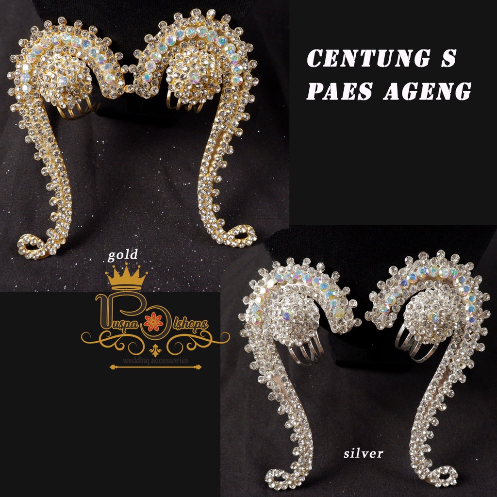 Centung S terbuat dari bahan mixed metal dengan taburan swaroski menambah elegan produk ini biasa digunakan untuk pengantin paes ageng. Centung S ini memiliki ukuran 14 cm panjangnya dan 6 cm lebar S-nya. Centung dapat 2 buah / sepasang kanan dan kiri. Tersedia warna gold dan silver silahkan memilih pada varian yang tersedia Kami tulis 500 gr karena terkait kemasan produk dan buble wrap #centungpaesageng#centungs#centung jogja Centung S merupakan aksesoris yang biasa digunakan untuk pengantin adat paes ageng sehingga terlihat cantik sesuai dengan tradisi adat jogja paes ageng.