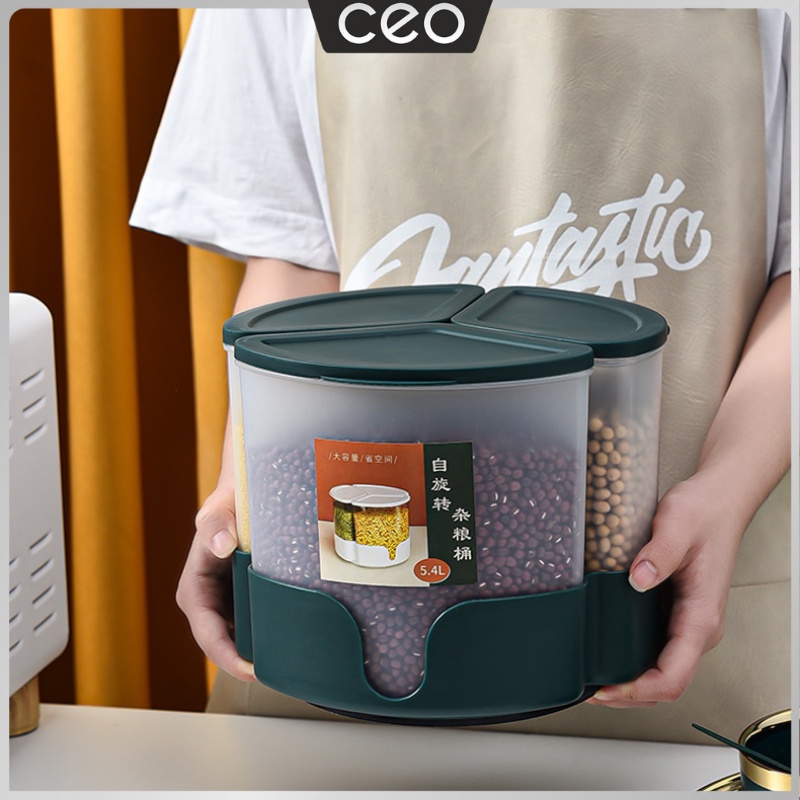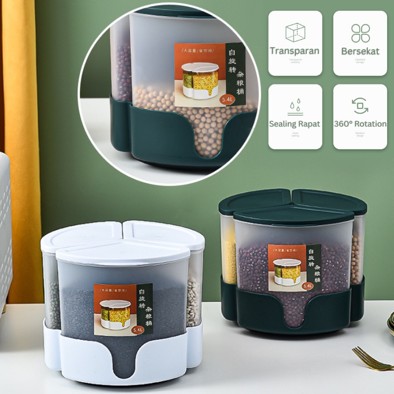 Detail CEO Tempat penyimpanan serbaguna untuk beras / kacang / snack 3 IN 1 kotak 3 sekat