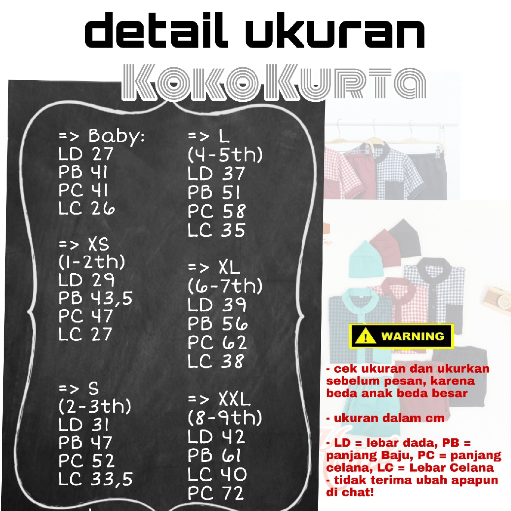 seperti biasa terdapat 6 ukuran untuk 0-9 tahun koko anak Ceriakid bisa dipakai dari bayi baru lahir