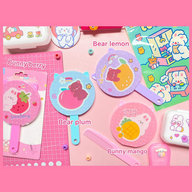 Perawatan & Kecantikan > Aksesoris Make Up > Kaca / Cermin > Cermin Aesthetic Karakter Lucu | Kaca Make Up Saku | Cermin Genggam Multifungsi Sisir Motif