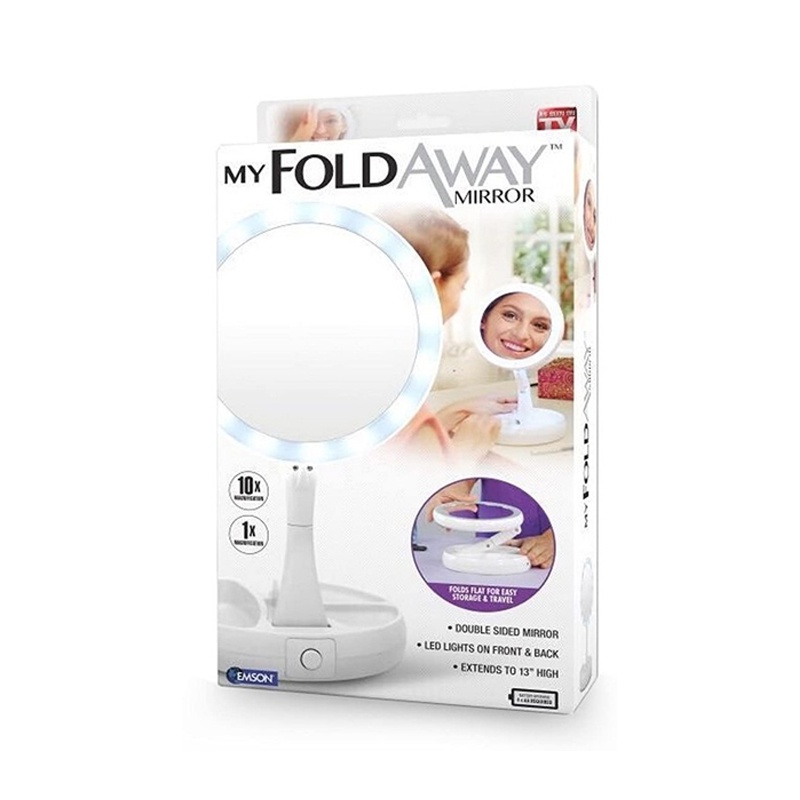 Nama Produk:Cermin LED LIpat . Size: -Saat Lipat 17.5x5.3cm, -Size Kotak:18*17*5.5CM